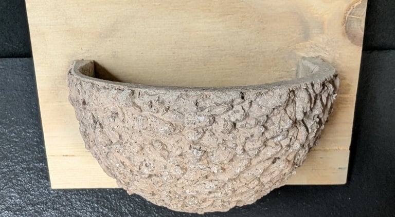 Handcrafted woodcrete House Martins and Swallow cups with a realistic mud like finish.